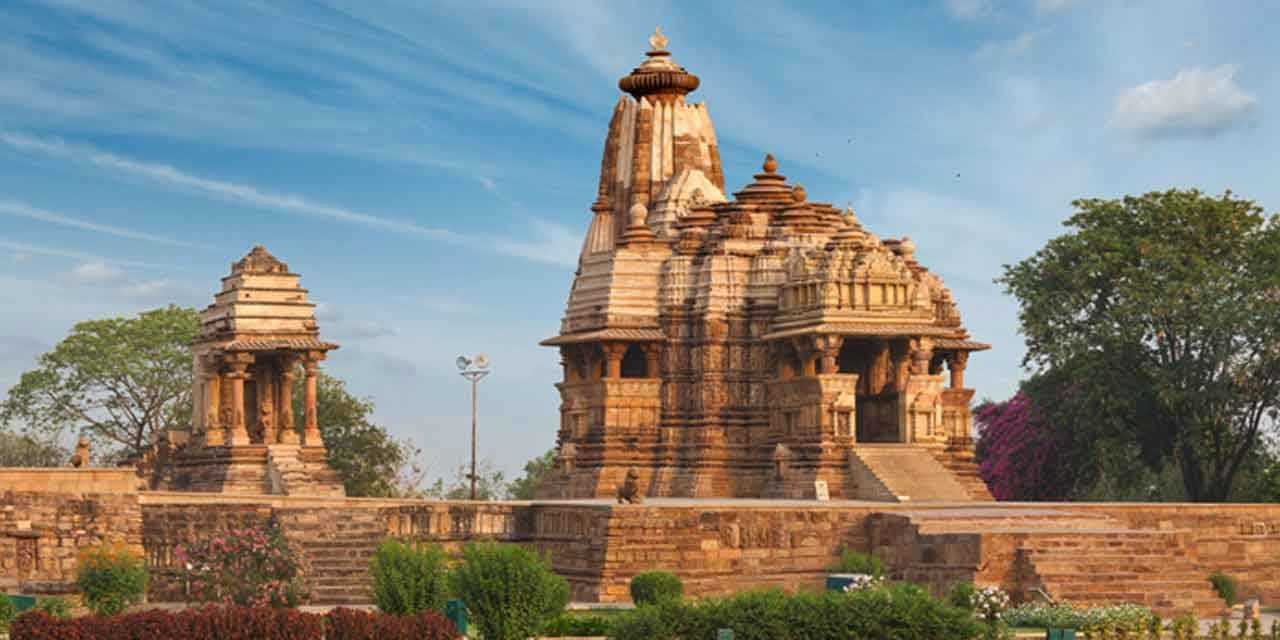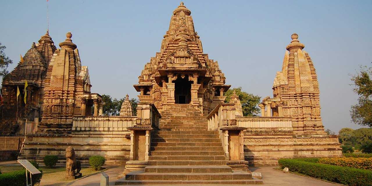 Javari Temple is a tenth century Hindu Mandir located in the Eastern part of Khajuraho Group of Monuments. The temple is dedicated to Lord Shiva but the main idol is broken and headless. It has well proportioned architecture, with a sanctum, vestibule, mahamandap and portico, but without a pradakshina-path. It has a remarkable ‘Makar- Torans’, a Capricorn Arch, and shikhar. It has two bands of carved sculptures on the outer walls, containing graceful women, flying couples, dancing girls and so on. The entrance gate of the sanctum has sculptures depicting nav-graha on the top. Along with nav-graha sculptures there are sculptures of Hindu deity Brahma, Vishnu and Shiva.